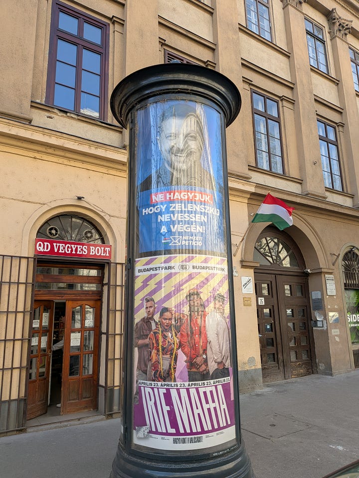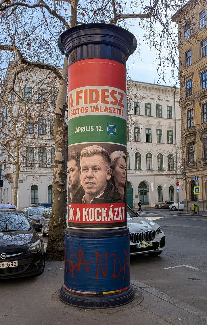 In Budapest, I saw a few of the Fidesz posters. On the right, the Ukrainian president is seen glowering alongside the slogan “Don’t let Zelensky have the last laugh.” On the left, you can see Zelensky with Magyar and Ursula von der Leyen, the president of the European commission, along with the slogan “They are the risk. Fidesz is the safe choice.”